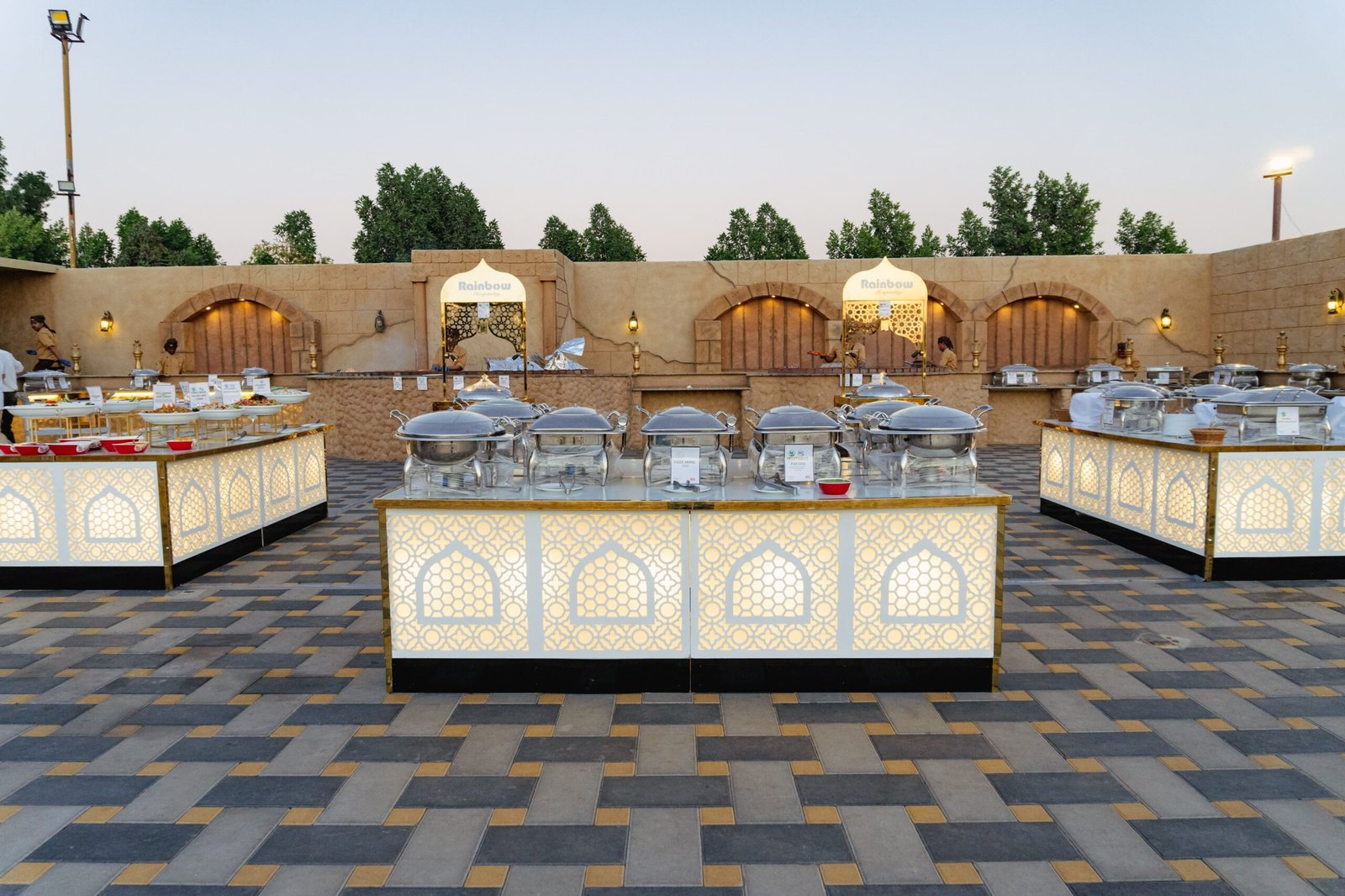 Savor a wide selection of BBQ dishes, fresh salads, vegetarian options, and traditional Arabic sweets.