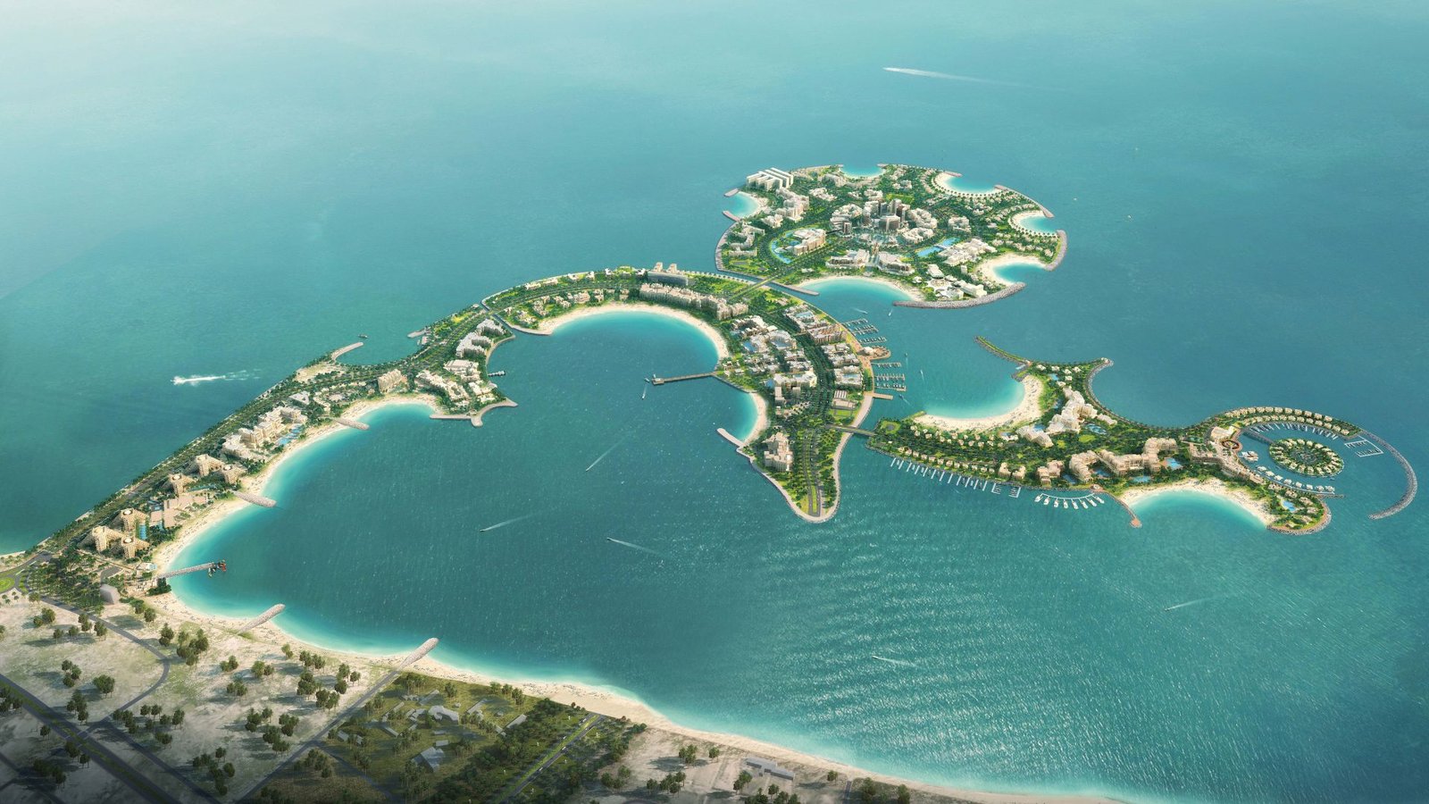 Pass through the man-made island cluster, known for its scenic coastline and modern developments.
